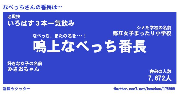 | 2回繰り返すあだ名 | 『なべなべ』『ななべべ』『ぬらぬら』 |