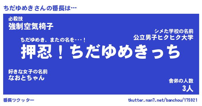 | ファンタジー風あだ名 | 『チダフェル』『エターナルチダユメキー』 |