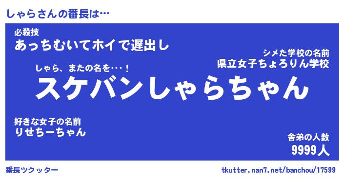 | ヒーロー風カッコイイあだ名 | 『スーパーシャラ』『ウルトラしゃらマン』 |