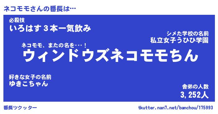 | ヘコむあだ名 | 『ネコにゅー』『なまこ酢』 |
