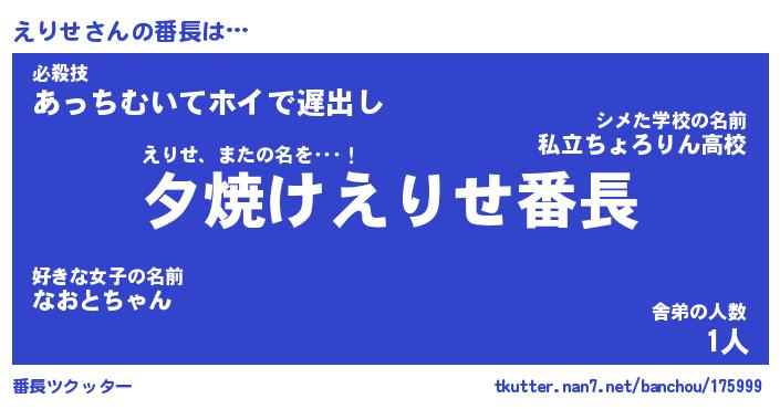 | 肩書あだ名 | 『えりせ御曹司』『えりせ国家主席』 |