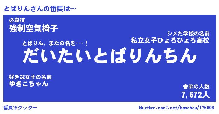 | 意味不明あだ名 | 『ペロリンとばりん』『永久保存とばりん』 |
