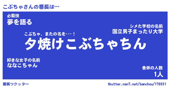 | 意味不明あだ名 | 『ペロリンこぶちゃ』『永久保存こぶちゃ』 |