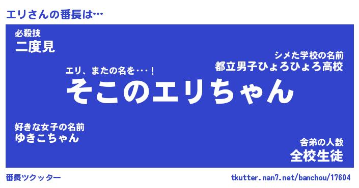 | 男性向けラノベタイトル風あだ名 | 『エリの憂鬱』『ノーゲーム・ノーエリ』 |
