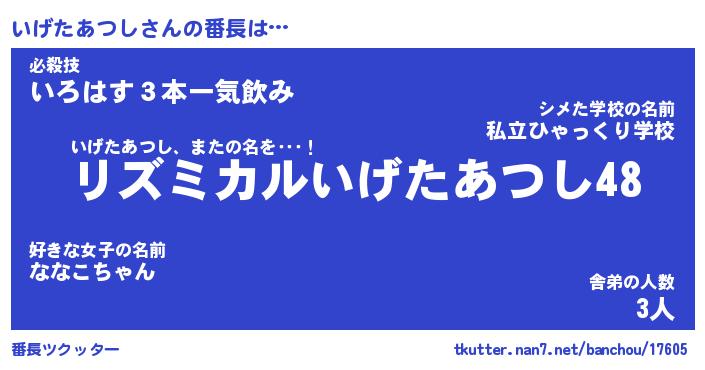 | 肩書あだ名 | 『いげたあつし社長』『いげたあつし団長』 |