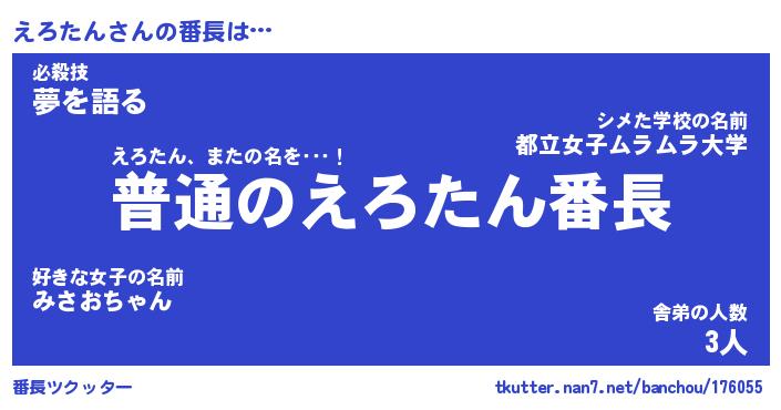 | 意味不明あだ名 | 『ペロリンえろたん』『永久保存えろたん』 |