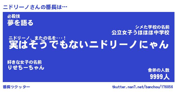 | ヘコむあだ名 | 『ニドにゅー』『豆乳』『ニドっちょ』 |