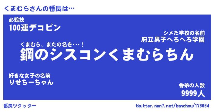 | 伝説のあだ名 | 『封印されしスナイパーくまむら』 |