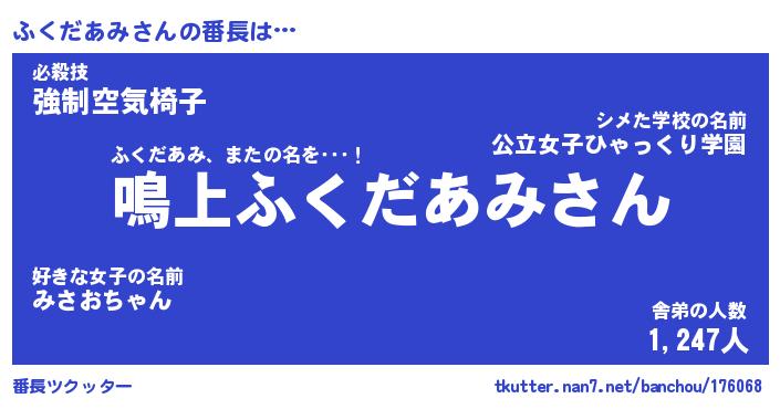 | ポケモン風あだ名 | 『フクチュウ』『フクダダネ』 |
