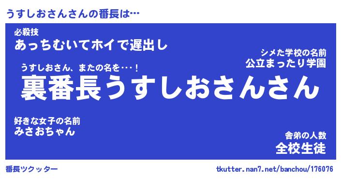 | ポケモン風あだ名 | 『ウスチュウ』『ウスシダネ』 |