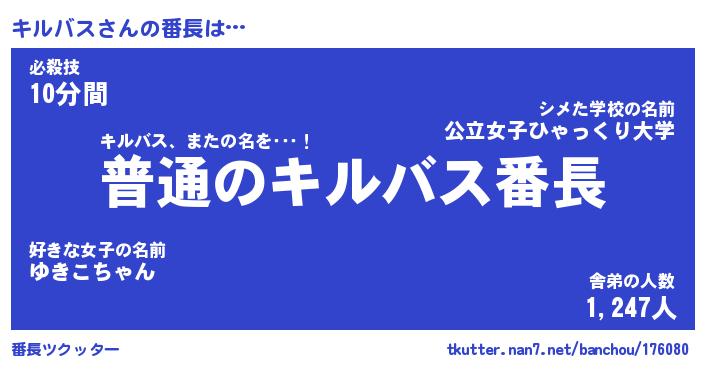 | 意味不明あだ名 | 『ペロリンキルバス』『永久保存キルバス』 |