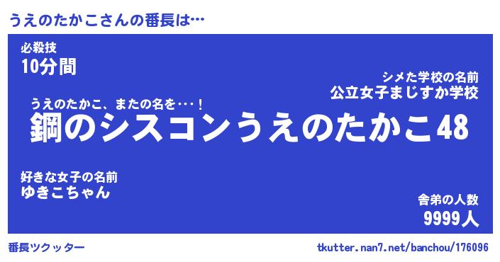 | 肩書あだ名 | 『うえのたかこ店長』『うえのたかこ団長』 |