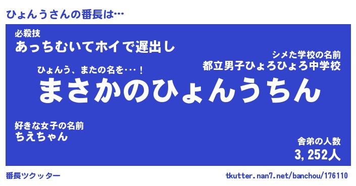 | ピコ太郎風あだ名 | 『ヒコ六郎』『ピヒ史郎』『ヒョ四郎』 |