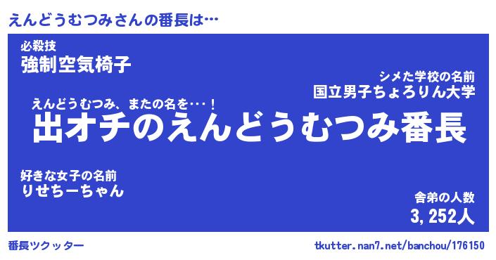 | ヘコむあだ名 | 『えんもー』『牛乳』『えん太郎』 |