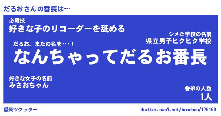 | ヒーロー風カッコイイあだ名 | 『スーパーダルオ』『ウルトラだるおマン』 |