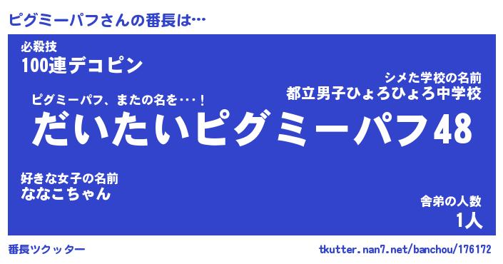 | ヒーロー風カッコイイあだ名 | 『スーパーピグミーパフ』『魔戒騎士ピグ』 |