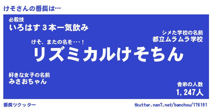 | ヒーロー風カッコイイあだ名 | 『スーパーケソ』『ウルトラけそマン』 |