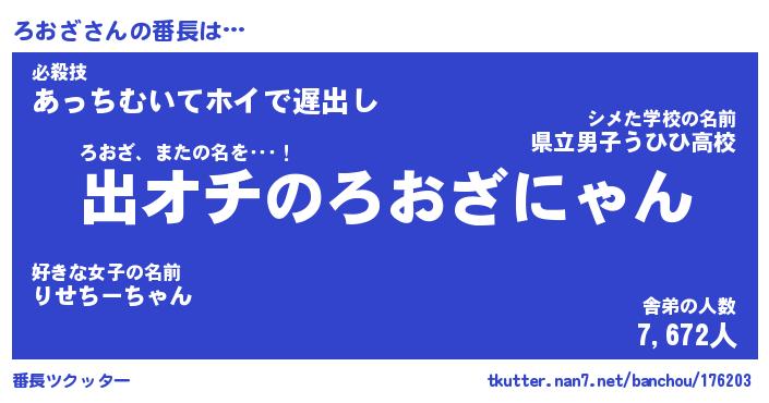 | 男性向けラノベタイトル風あだ名 | 『ろおざの憂鬱』 |