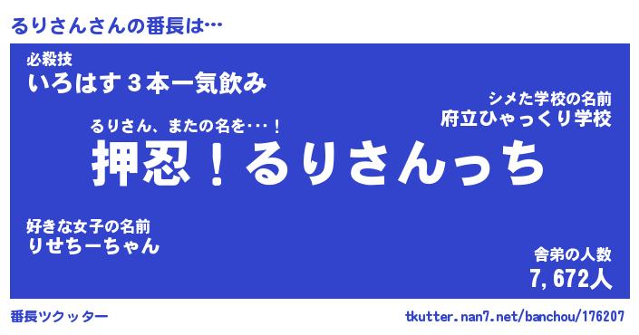 | 意味不明あだ名 | 『ペロリンるりさん』『永久保存るりさん』 |