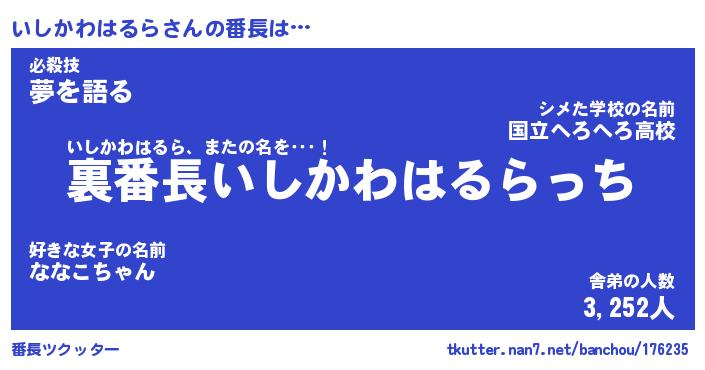 | 伝説のあだ名 | 『不死鳥のスナイパーいしかわはるら』 |