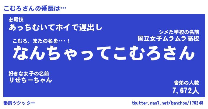 | 伝説のあだ名 | 『伝説のスナイパーこむろ』 |