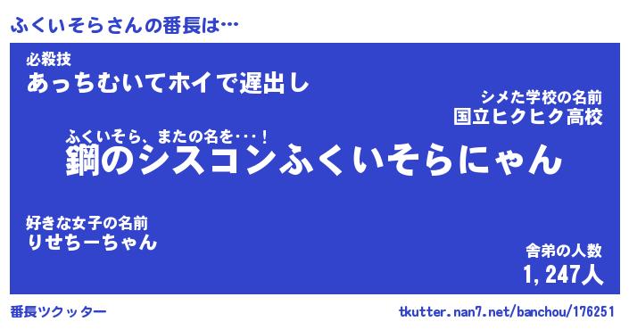| ヒーロー風カッコイイあだ名 | 『スーパーフクイソラ』『天弓騎士フク』 |