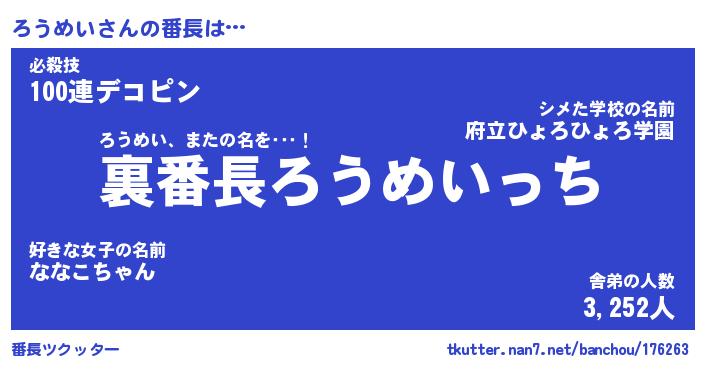 | ヒーロー風カッコイイあだ名 | 『スーパーロウメイ』『天弓騎士ロウ』 |