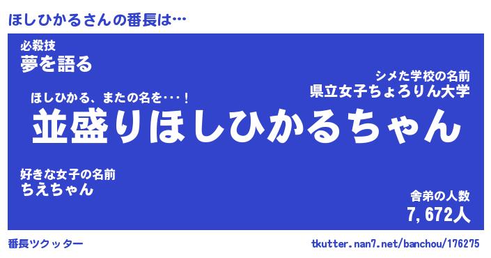 | ファンタジー風あだ名 | 『ホシフェル』『エターナルホシヒカルー』 |