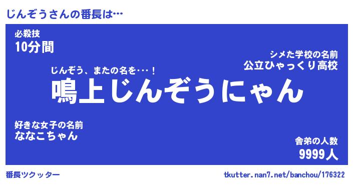 | 意味不明あだ名 | 『ペロリンじんぞう』『永久保存じんぞう』 |