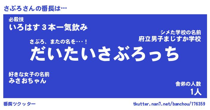 | 意味不明あだ名 | 『ペロリンさぶろ』『さぶろフォーエバー』 |
