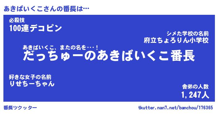 | 肩書あだ名 | 『あきばいくこ店長』『あきばいくこ班長』 |