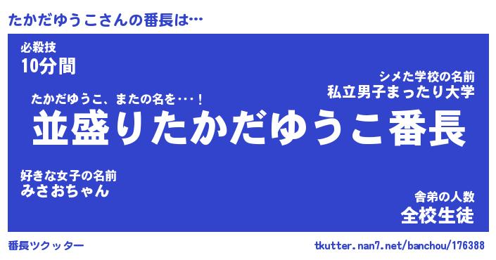 | 男性向けラノベタイトル風あだ名 | 『たかだゆうこの憂鬱』 |