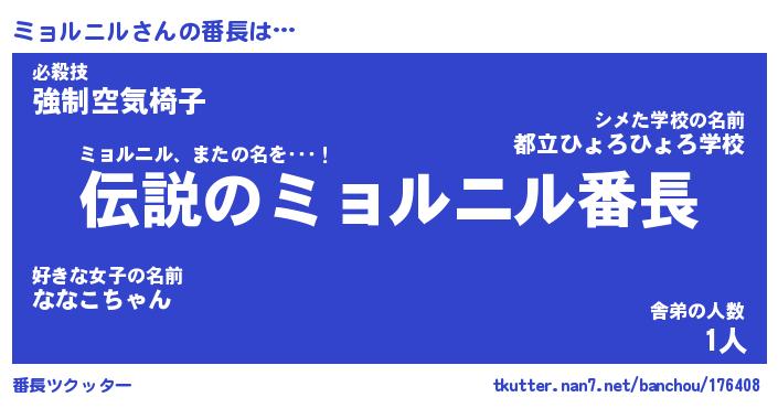 | ヘコむあだ名 | 『ミョふぇ~』『牛乳』『ミョっちょ』 |