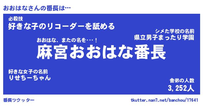 | 意味不明あだ名 | 『ペロリンおおはな』『永久保存おおはな』 |
