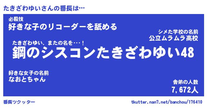 | 伝説のあだ名 | 『封印されしスナイパーたきざわゆい』 |