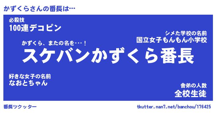 | 意味不明あだ名 | 『ペロリンかずくら』『永久保存かずくら』 |