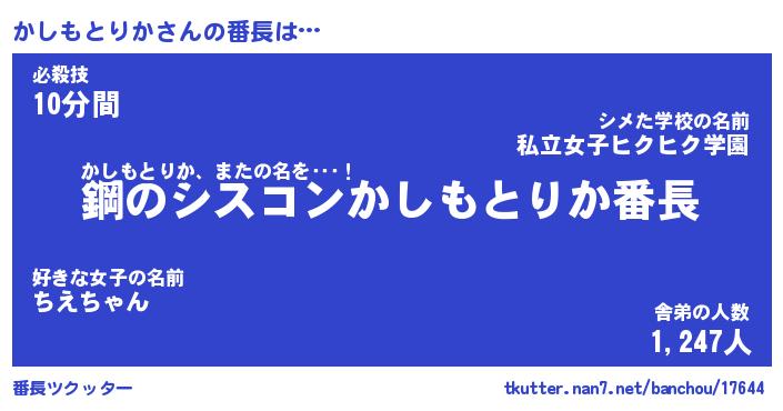 | 伝説のあだ名 | 『封印されしスナイパーかしもとりか』 |