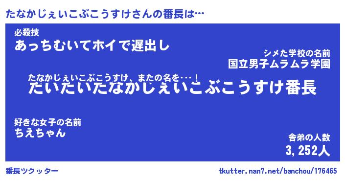 | 男性向けラノベタイトル風あだ名 | 『たなかじぇいこぶこうすけの憂鬱』 |