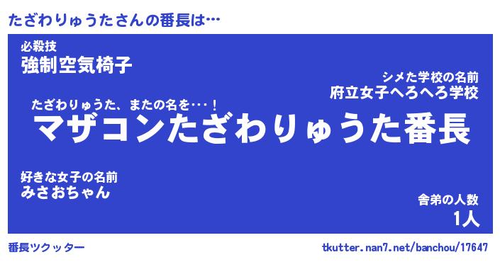| 意味不明あだ名 | 『ペロリンたざわりゅうた』 |