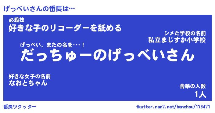| ポケモン風あだ名 | 『ゲッチュウ』『ゲッベダネ』 |