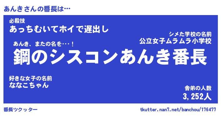 | 伝説のあだ名 | 『封印されしスナイパーあんき』 |