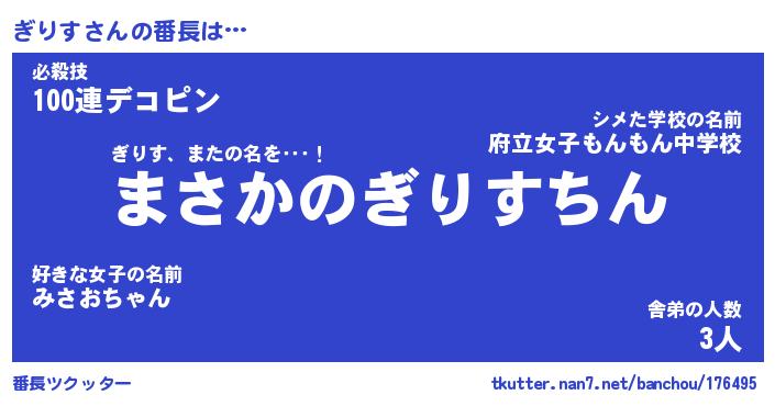 | 伝説のあだ名 | 『伝説のスナイパーぎりす』 |