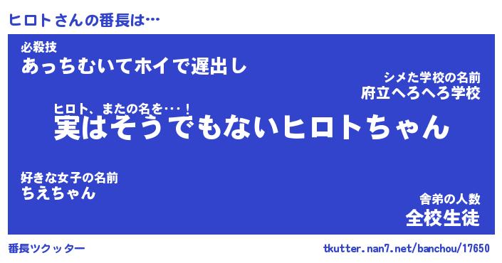 | ポケモン風あだ名 | 『ヒロチュウ』『ヒロトダネ』 |