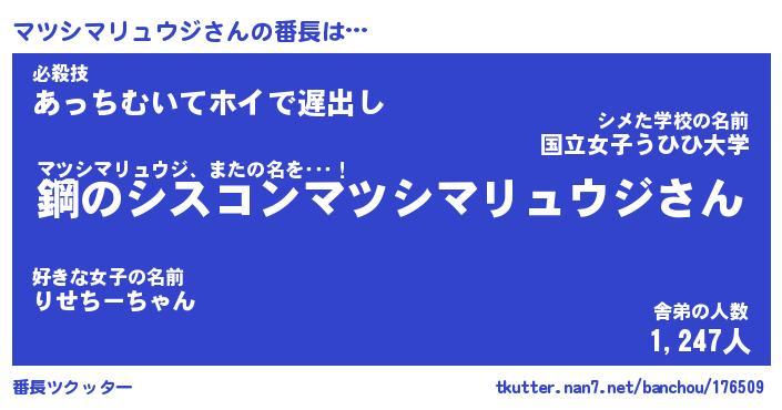 | 意味不明あだ名 | 『ペロリンマツシマリュウジ』 |