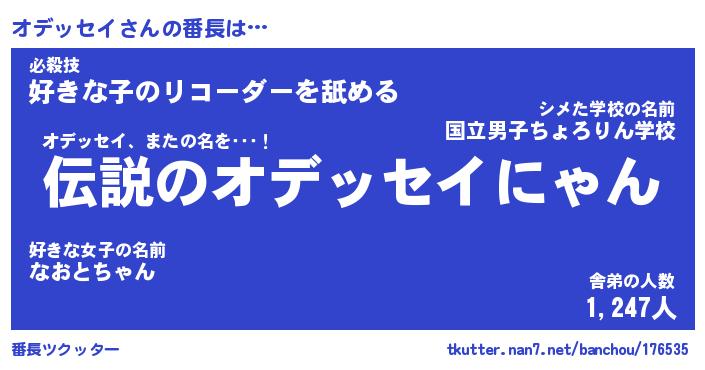 | ヘコむあだ名 | 『オデふぇ~』『豆乳』『オデっ子』 |