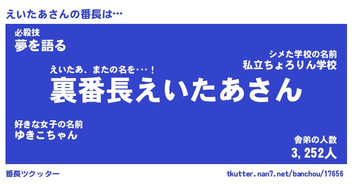 | 肩書あだ名 | 『えいたあCEO』『えいたあ国家主席』 |