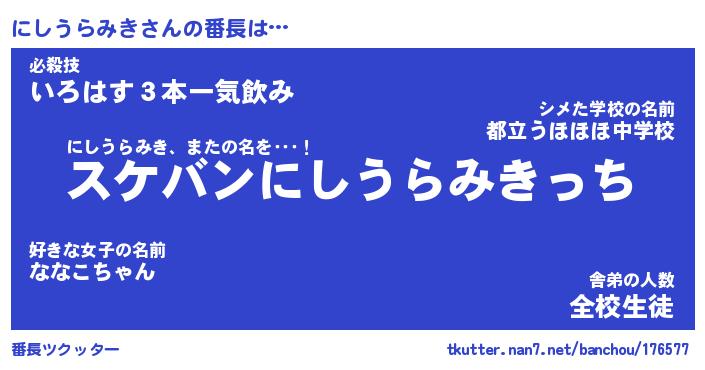 | ポケモン風あだ名 | 『ニシチュウ』『ニシウダネ』 |