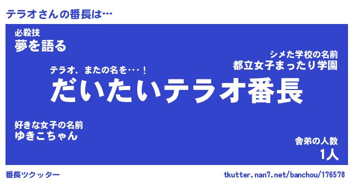 | ヒーロー風カッコイイあだ名 | 『スーパーテラオ』『ウルトラテラオマン』 |