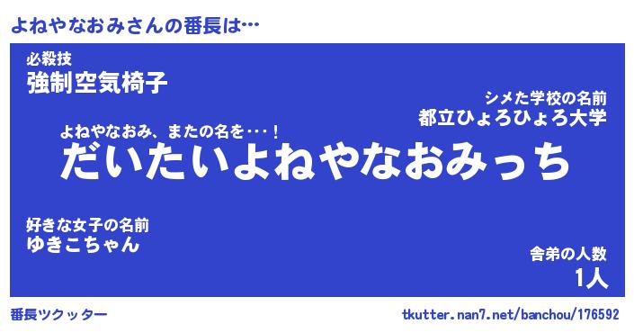 | 2回繰り返すあだ名 | 『よねよね』『よよねね』『おやおや』 |