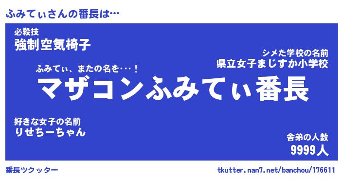 | ツイッター | ふみてぃさんのツイッターID『namakemono_man』 |